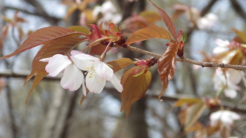 | ヤマザクラ(橘山) | イヌザクラ(橘山・10m位高い枝の先端に4月下旬に咲きます。) |